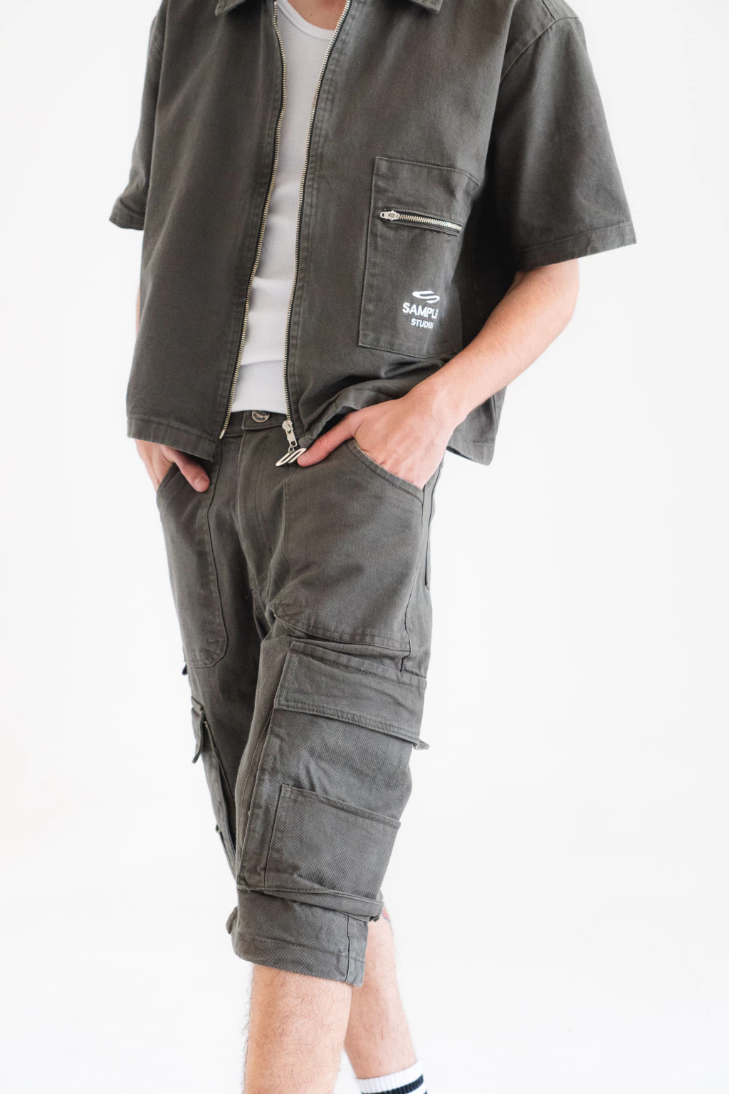 Berrmuda Jort Cargo oversize fit. 4 bolsillos. Bull negro. Pasacinto, cierre frontal con cremallera, y botón de metal.