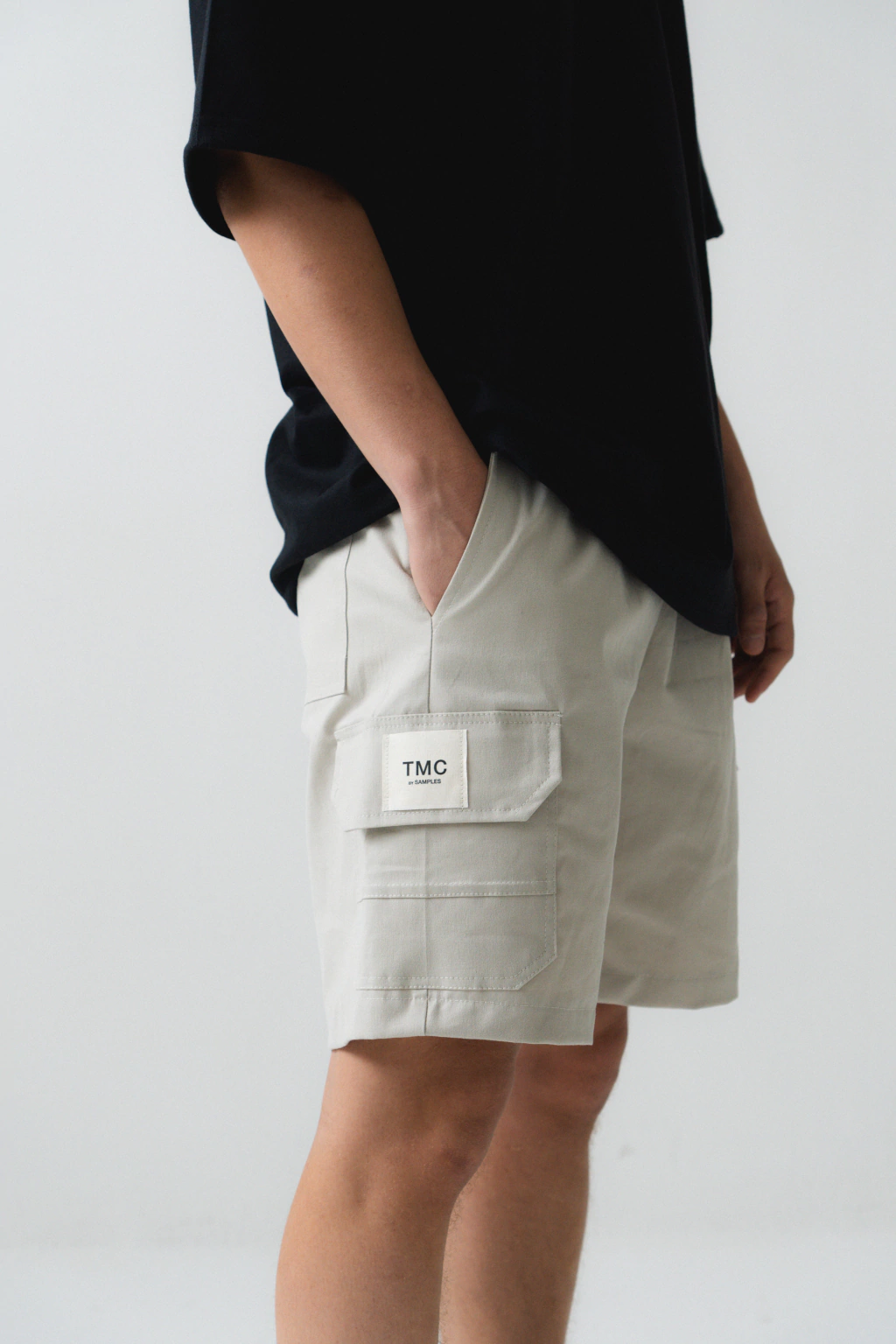Bermuda oversized de gabardina 7oz con bolsillos cargo. Color crema
