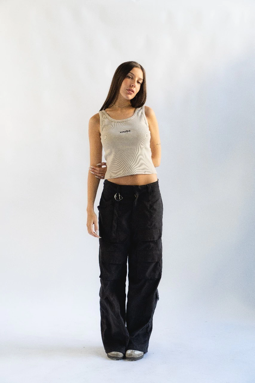 Musculosa de algodon morley pesado color beige lavado, con bordado en el pecho.